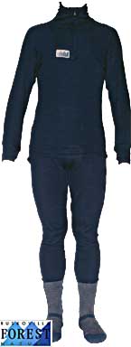 Sasta Oy (limited company) has for years made product development at the area of demanding expedition clothing. This has produced the superior clothes, which are now used at Svalbard 2005 expedition. Sasta Everest shell jacket and Sasta storm shell trousers are the base of our clothing. They are equippe with Gore-Tex 3L XCR coating. Some particulars of these clothes are: waterproof zips, zips at underarm, specially sculptured hood. Trousers have zips that go from ancle to waistline, snow locks, straps with velcro adjustment and specially shielded fly. RUSKOVILLA Forest underwear
